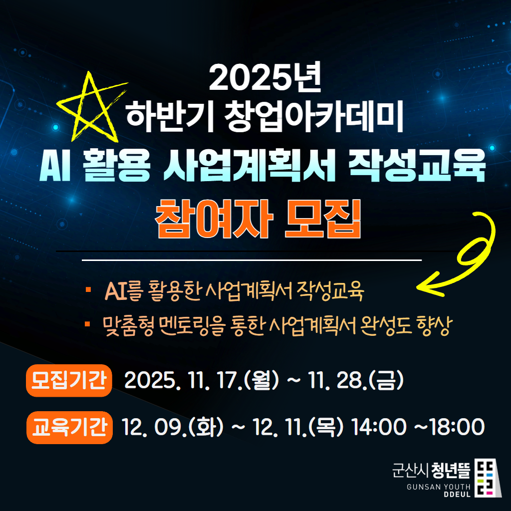 ❍ 교 육 명: 2025년 하반기 창업아카데미 'AI 활용 사업계획서 작성교육'